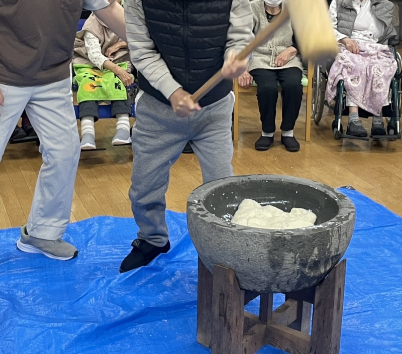 もちつき大会を行いました。「よいしょ」の掛け声に合わせて利用者様も頑張って杵で、ついてくれました。