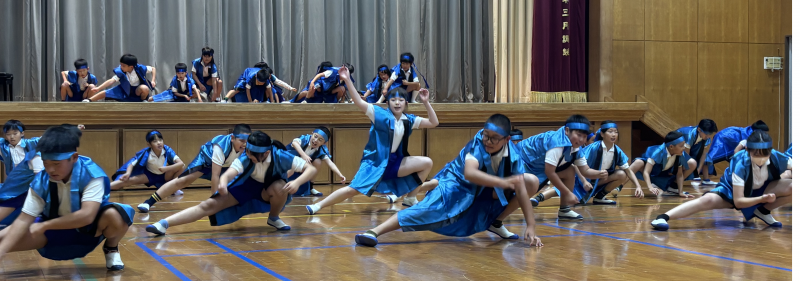また、中津小学校児童による「中小ソーラン」を披露して頂き、児童による力強い太鼓は印象的です。また、力強い中小ソーランも苑に戻ってから「なんと、良かったよ。もう孫も大きいから見ることないから嬉しかったよ」など様々な意見が飛び交い、運動会の名残が残りました。